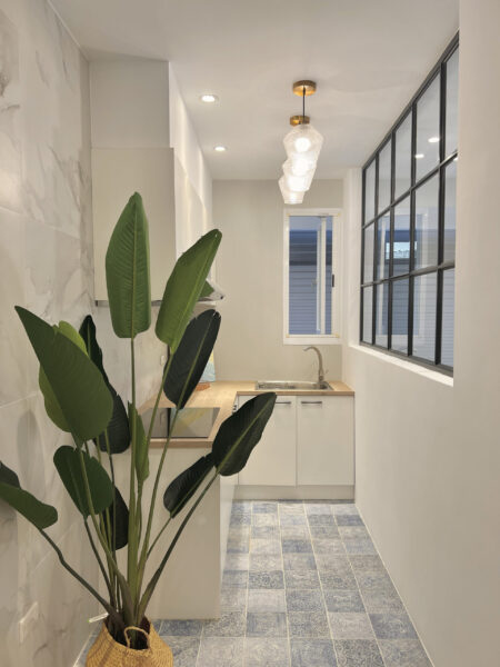 復古藍色的廚房花磚,不僅改善了採光問題,