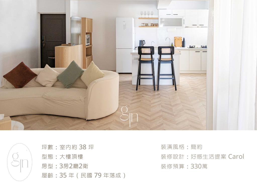 重新裝潢我想要:35 年老大廈 × 頂樓防水問題 × 330 萬預算 × 38坪大空間風格改造成北歐風。
